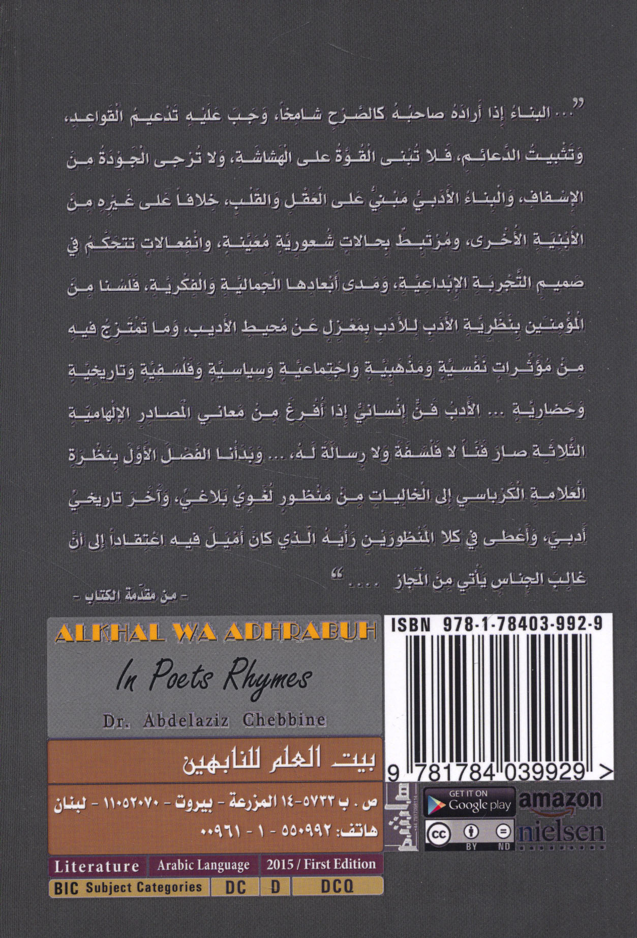 Published/Created: Bayrūt : Bayt al-‘Ilm lil-Nābihīn, 2018.