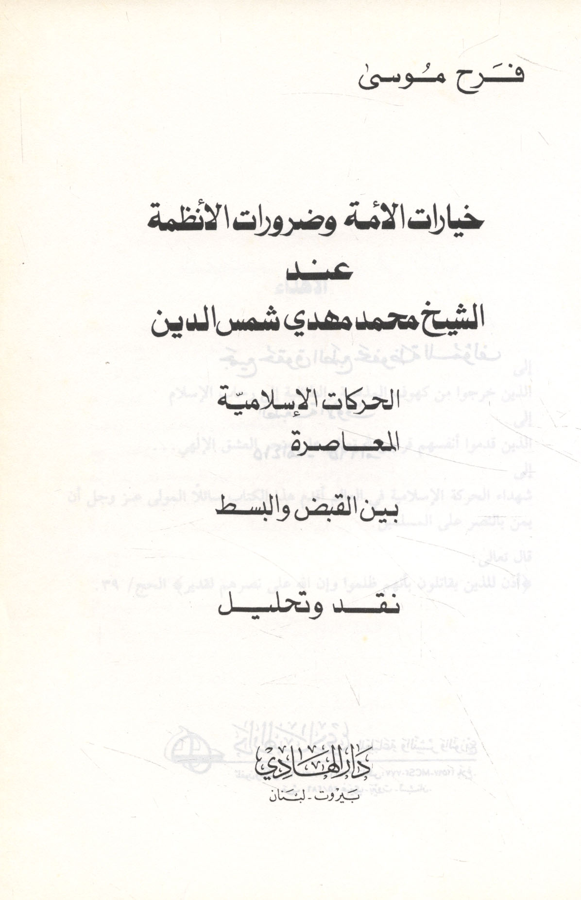 - Shams al-Din, Muhammad Mahdi, 1936-2001 -- Criticism and interpretation