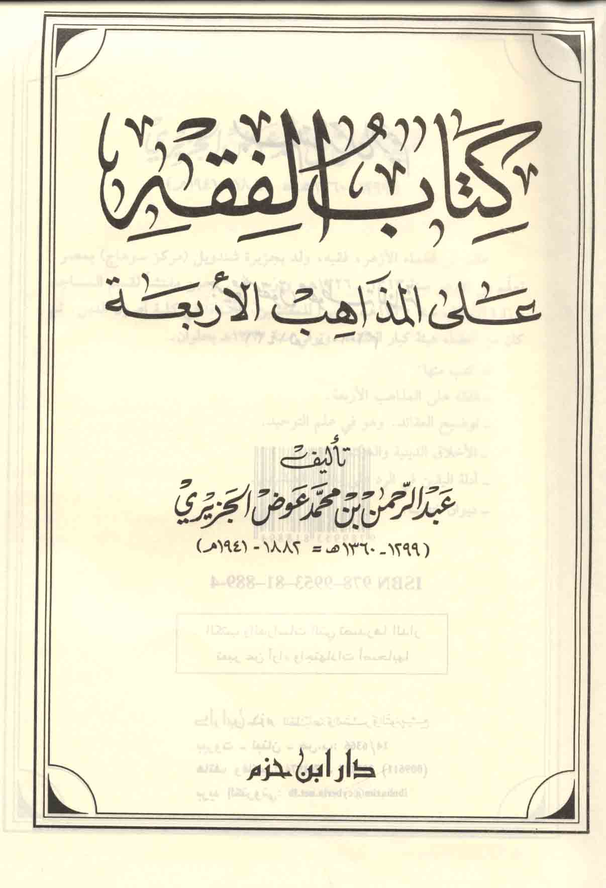 كـتـاب الـفـقـه عـلـى الـمـذاهـب الأربـعـة