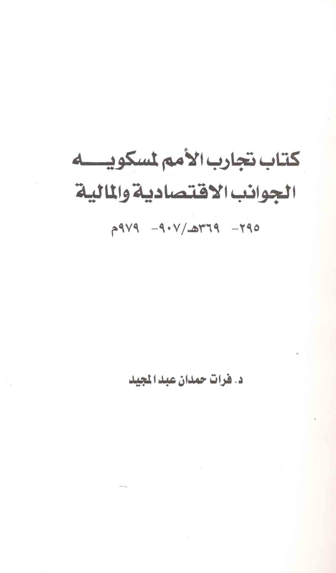 Kitāb Tajārib al-umam li-Miskawayh, al-jawānib al-iqtiṣādīyah wa-al-mālīyah, 295-369 H./ 907-979 M.