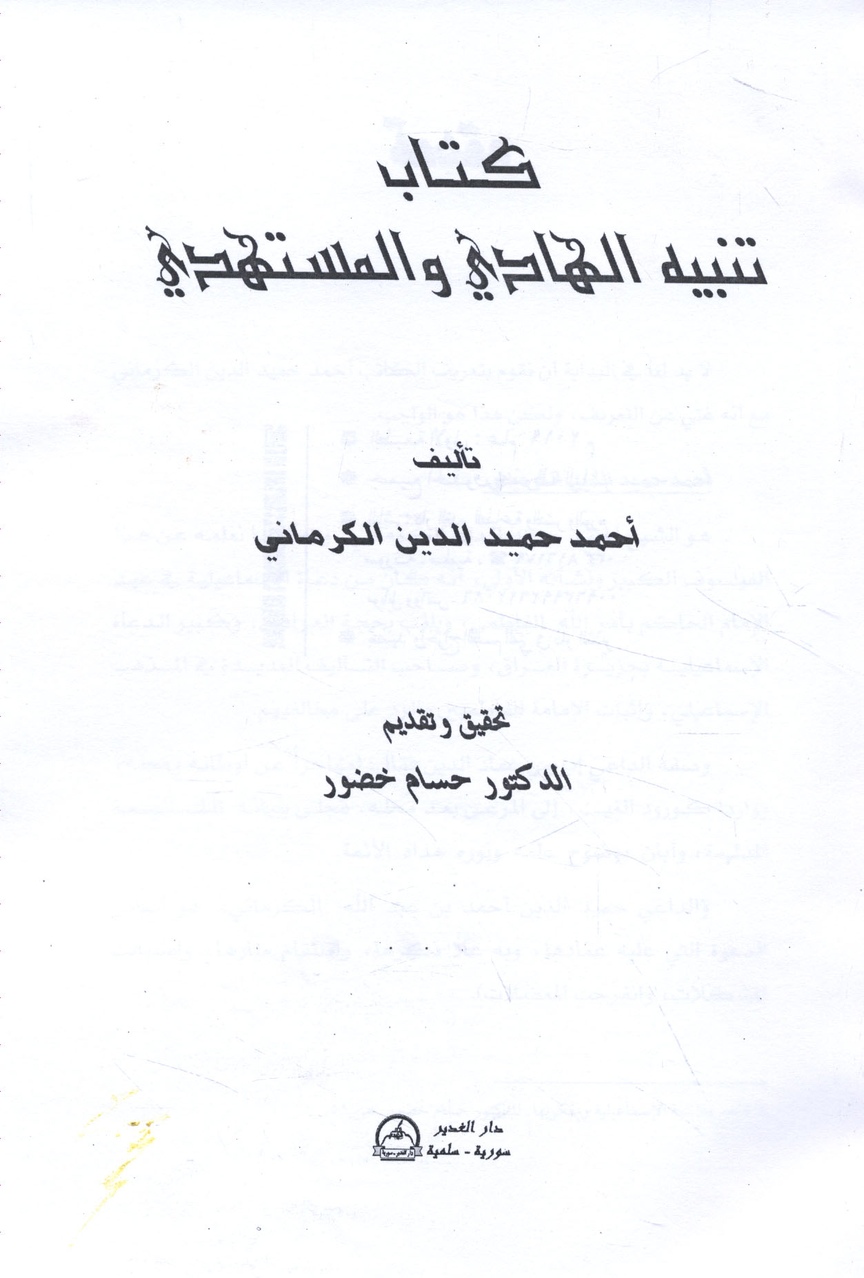 Published/Created: Salamīyah : Dār al-Ghadīr lil-Ṭibā‘ah wa-al-Nashr wa-al-Tajlīd, 2019.