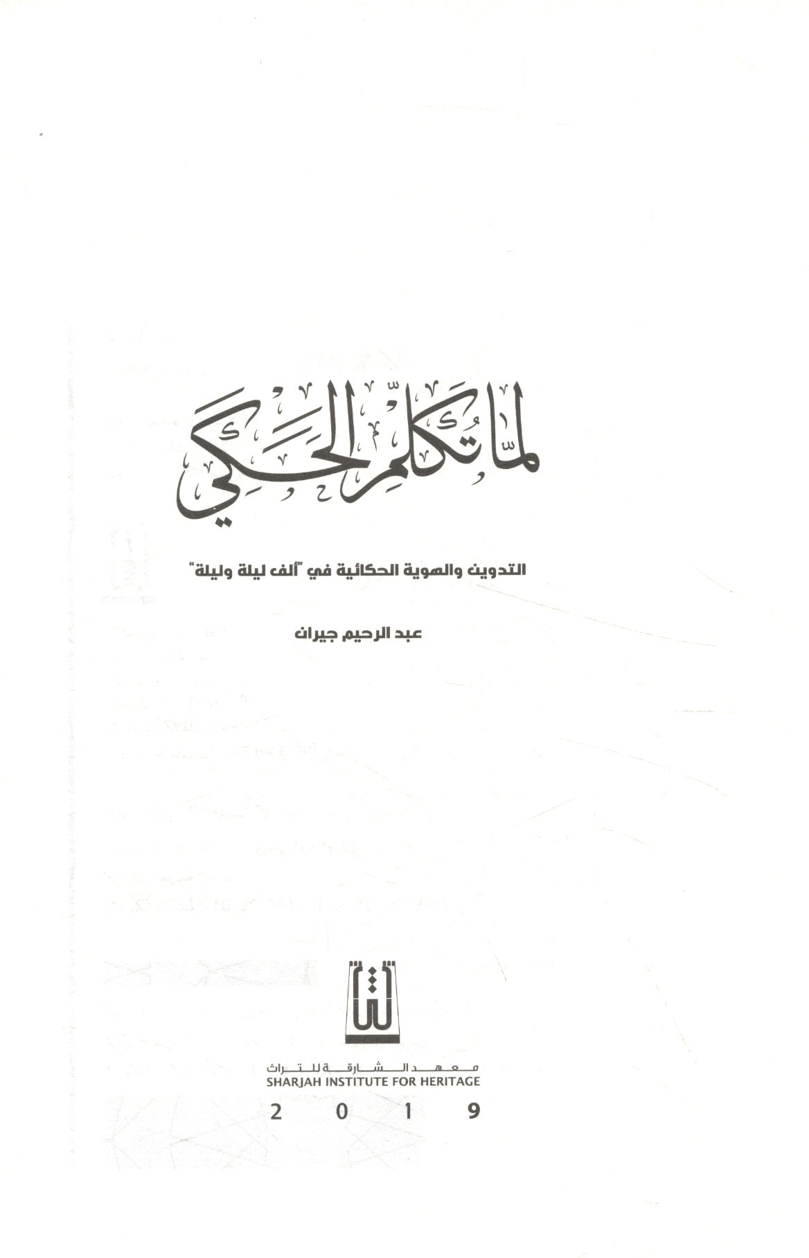 لـمّـا تـكـلـم الـحـكـي، الـتـدويـن والـهـويـة الـحـكـائـيـة فـي "ألـف لـيـلـة ولـيـلـة"