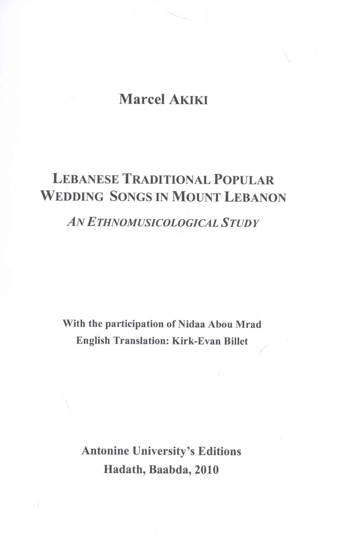 Lebanese traditional popular wedding songs in Mount Lebanon, an ethnomusicological study