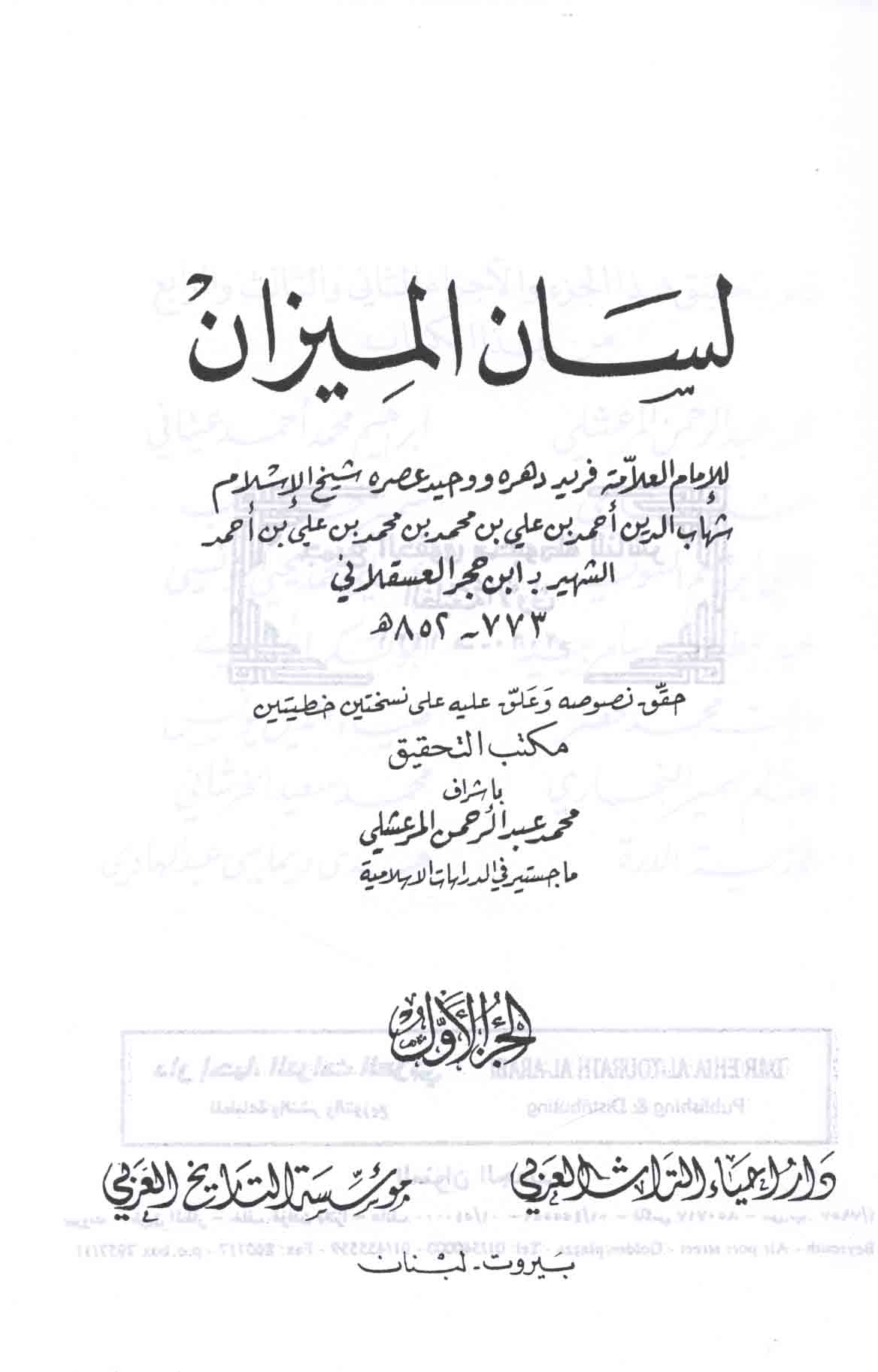 Published/Created: Bayrūt : Dār Iḥyā’ al-Turāth al-‘Arabī lil-Ṭibā‘ah wa-al-Nashr wa-al-Tawzī‘, 2010.
