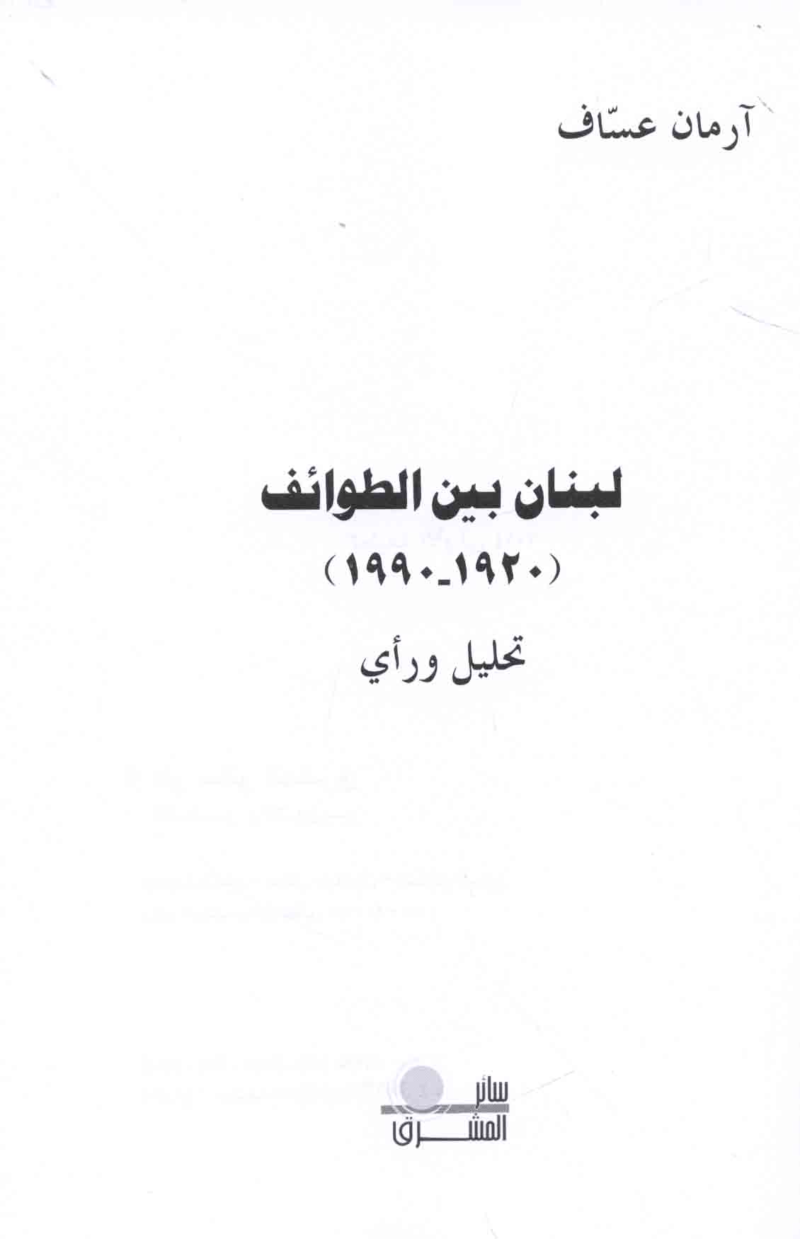 Lubnān bayna al-ṭawā’if, 1920-1990, taḥlīl wa-ra’y