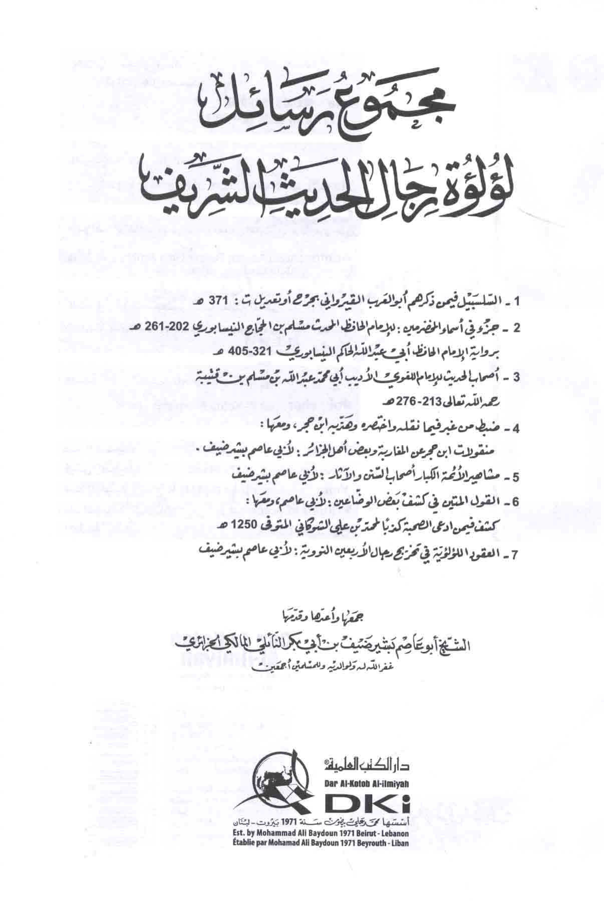 | Majmū‘ rasā’il fī ‘ilm al-Jarḥ wa-al-ta‘dīl li-arba‘ah min kibār al-fuqahā’ al-muḥaddithīn fī al-‘ālam al-Islāmī |