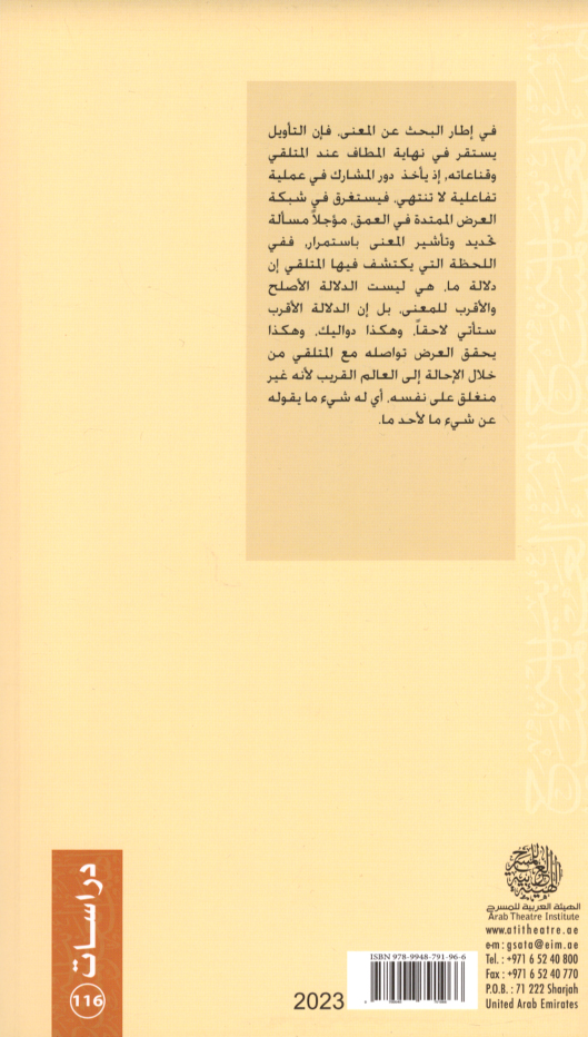 Published/Created: al-Shāriqah : al-Hay’ah al-‘Arabīyah lil-Masraḥ, 2023.