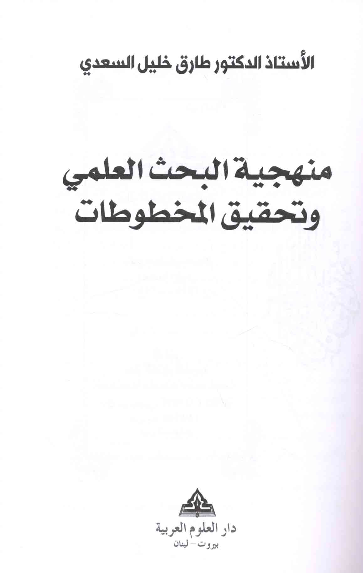 | Manhajīyat al-baḥth al-‘ilmī wa-taḥqīq al-makhṭūṭāt |