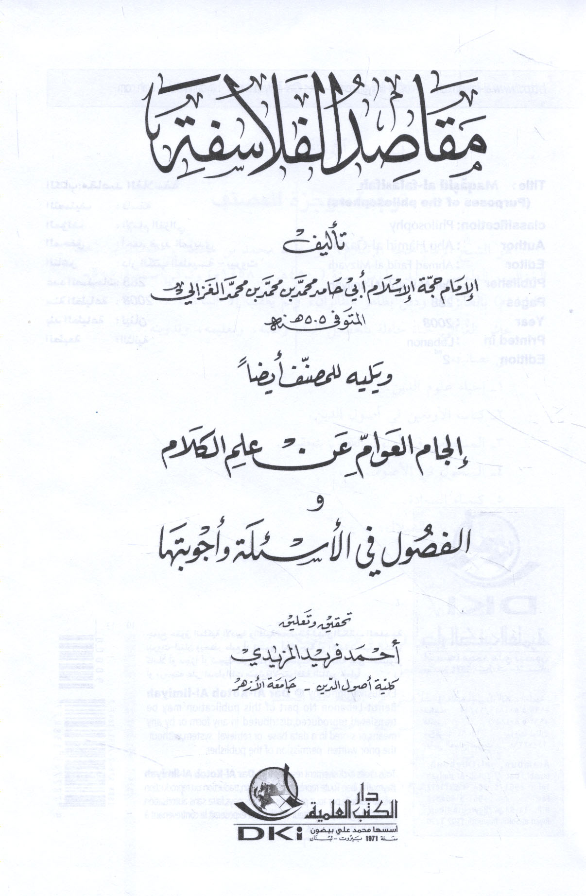 Published/Created: Bayrūt : Dār al-Kutub al-‘Ilmīyah, 2003.