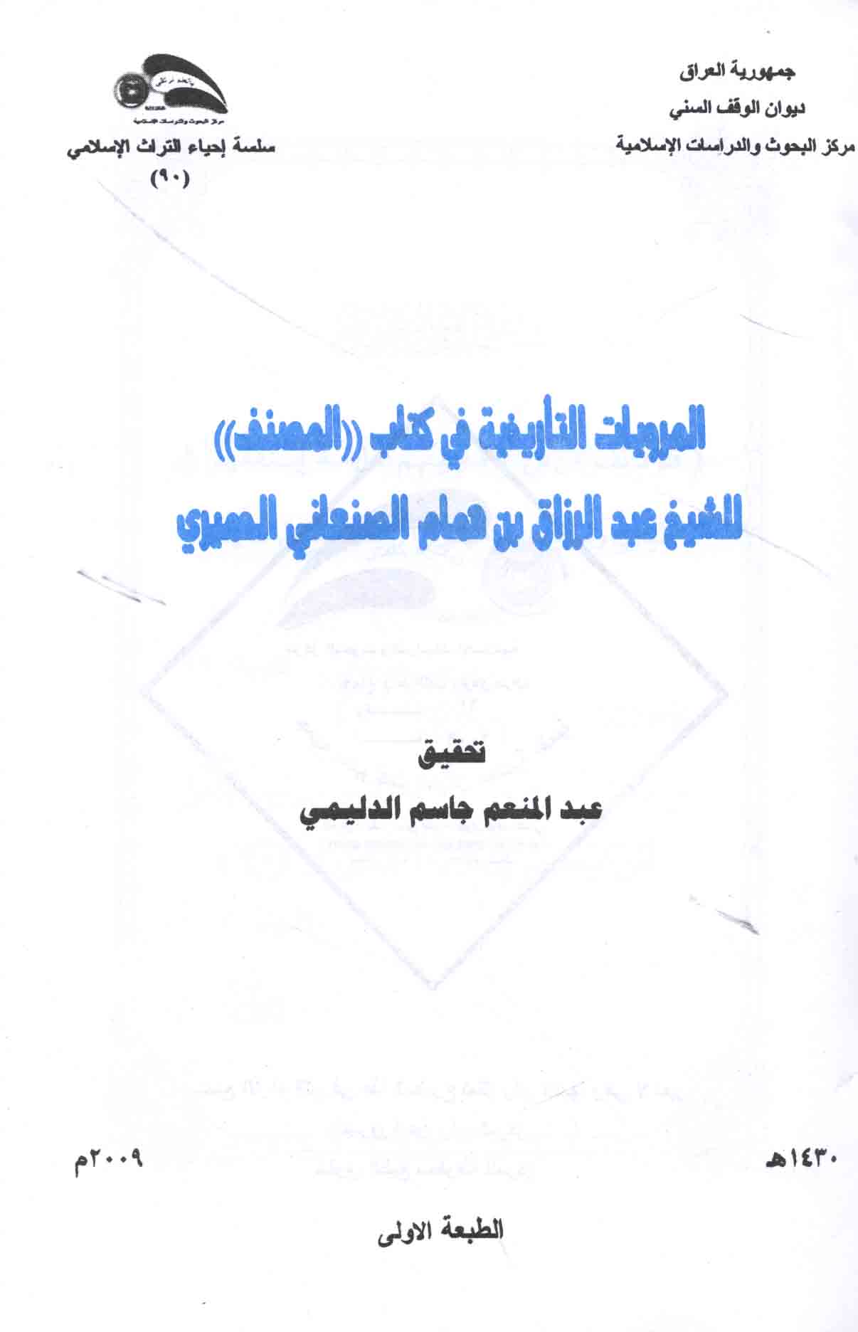 Marwīyāt al-tārīkhīyah fī kitāb al-Muṣannaf lil-shaykh ‘Abd al-Razzāq ibn Hammām al-Ṣan‘ānī al-Ḥimyarī