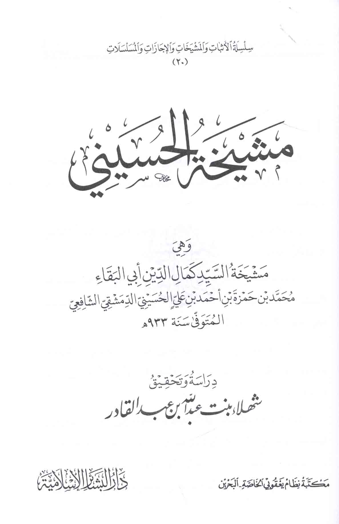 Series: Silsilat al-Athbāt wa-al-Mashyakhāt wa-al-Ijāzāt wa-al-Musalsalāt, 20