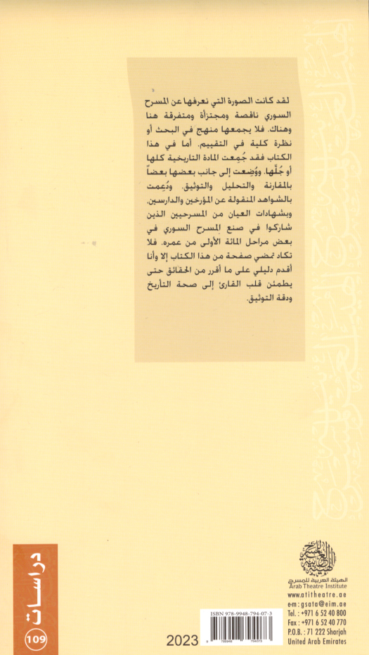 Published/Created: al-Shāriqah : al-Hay’ah al-‘Arabīyah lil-Masraḥ, 2023.