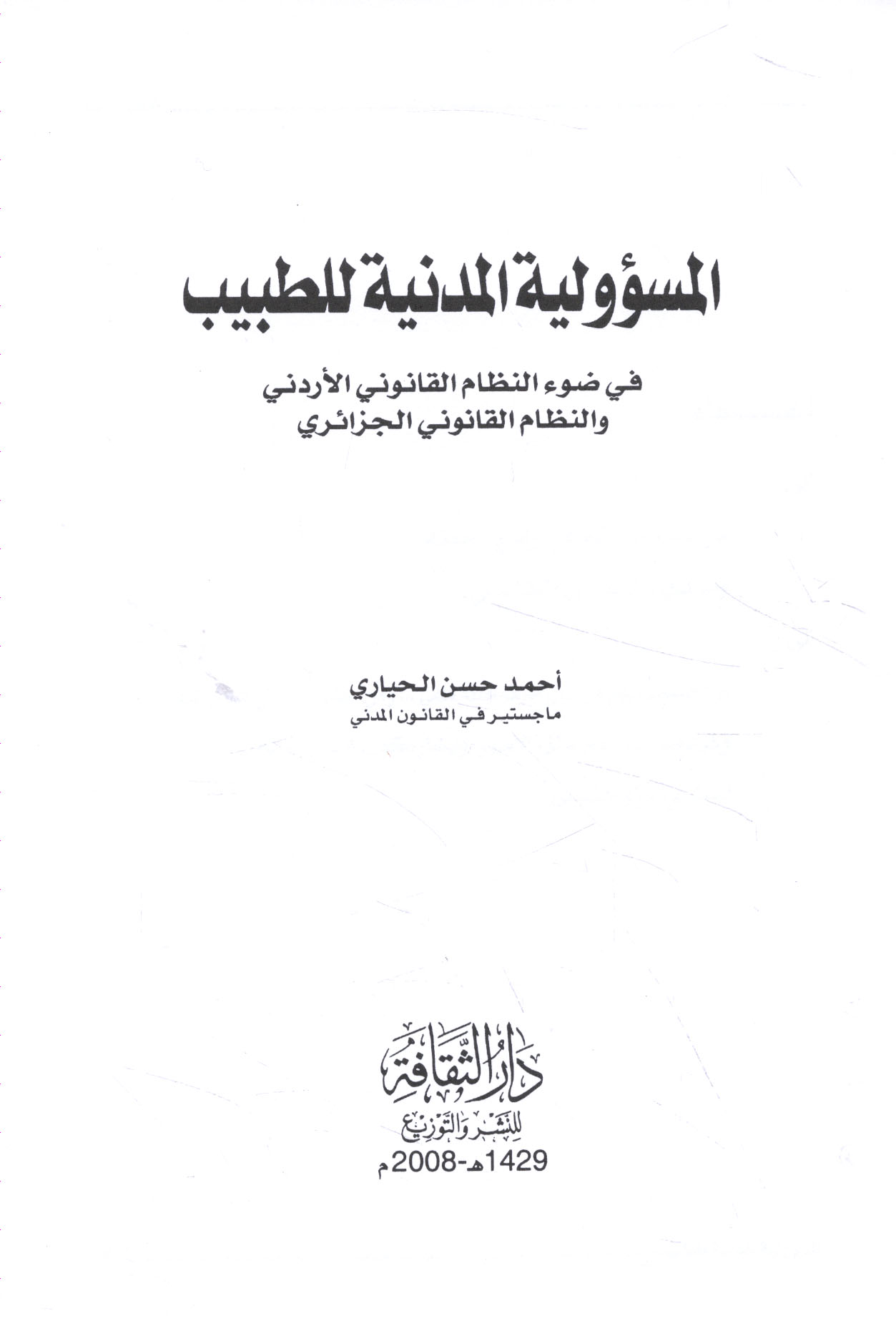 | Mas’ūlīyat al-akhṭā’ al-ṭibbīyah fī al-tashrī‘āt al-Urdunīyah wa-al-‘Arabīyah wa-al-Faransīyah |