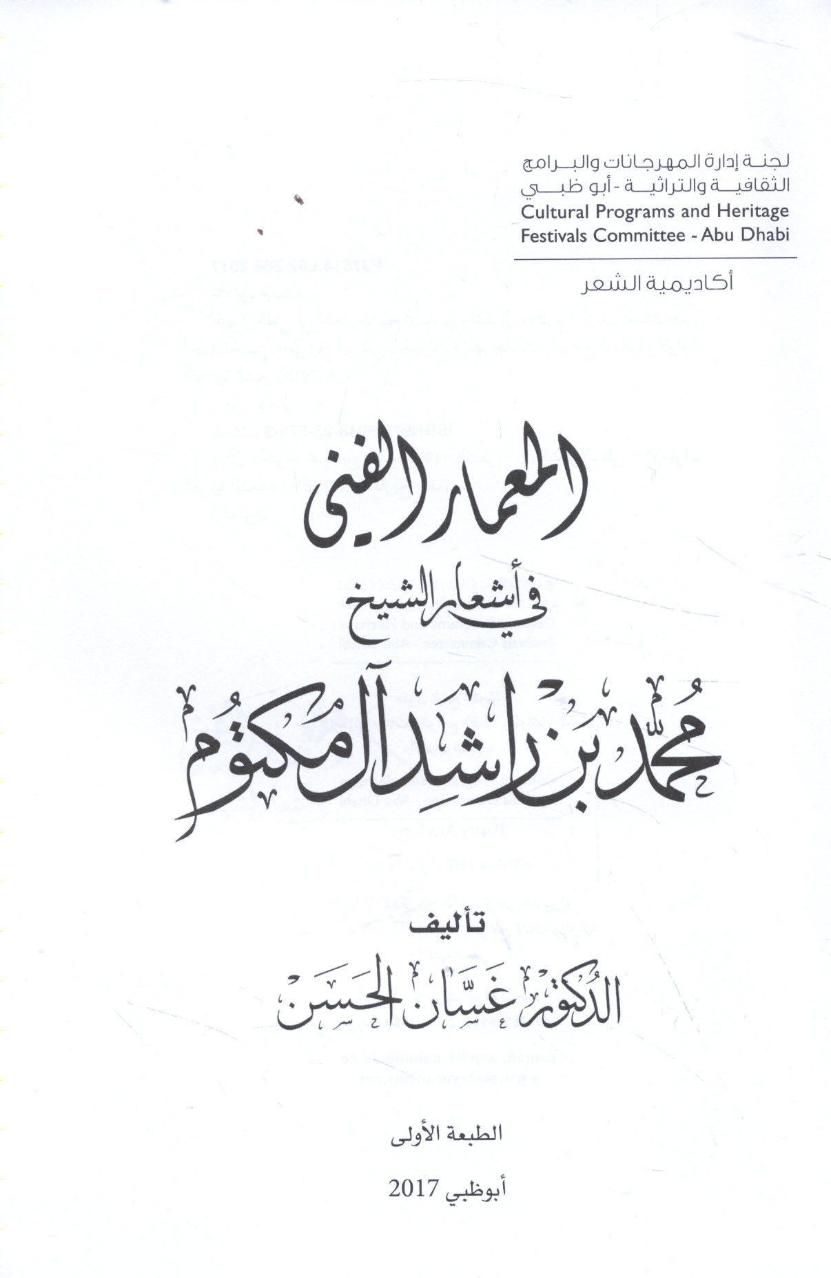 Published/Created: Abū Ẓaby : Lajnat Idārat al-Mahrajānāt wa-al-Barāmij al-Thaqāfīyah wa-al-Turāthīyah, 2017.