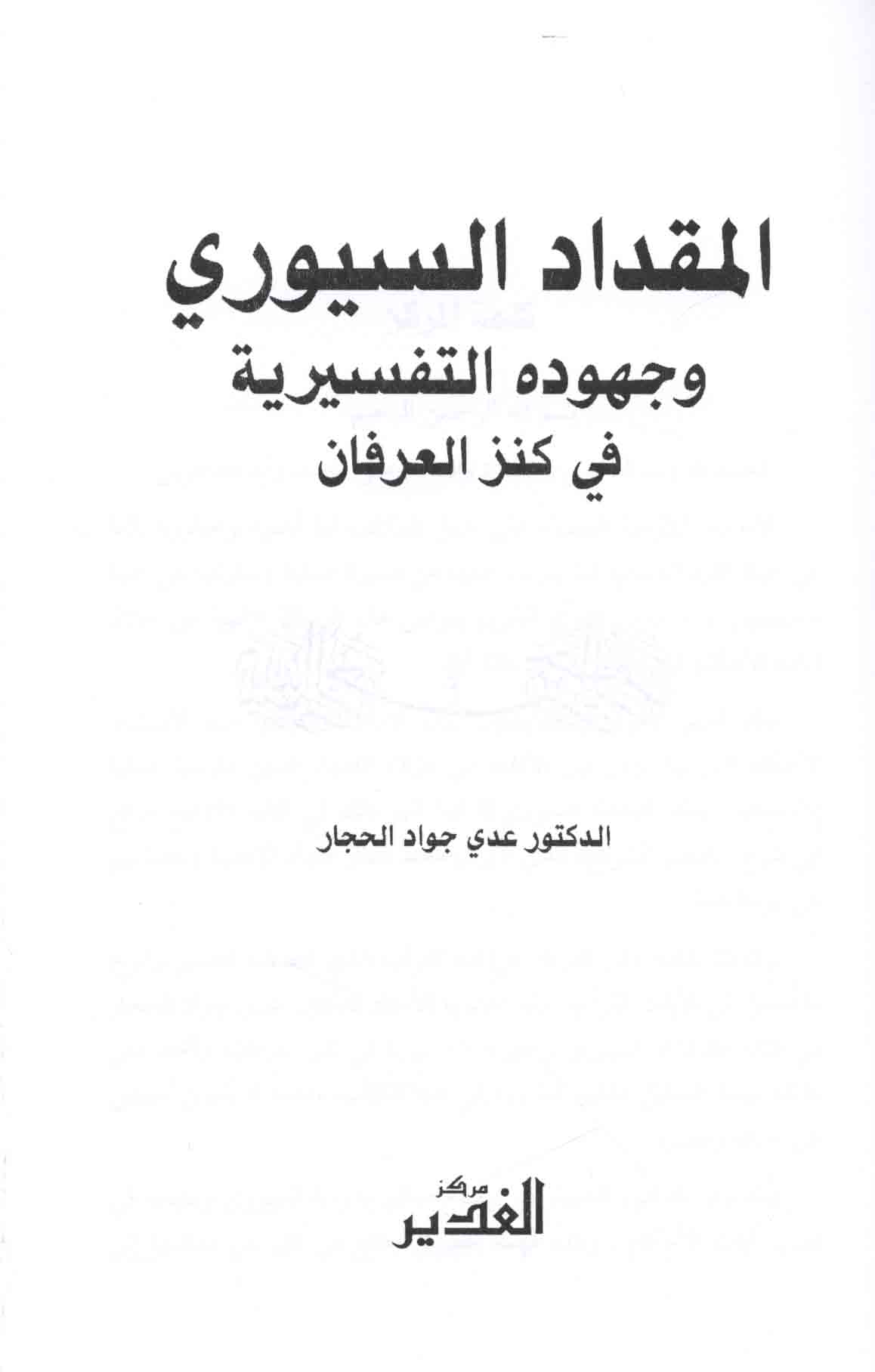 Miqdād al-Suyūrī wa-juhūduhu al-tafsīrīyah fī Kanz al-‘irfān