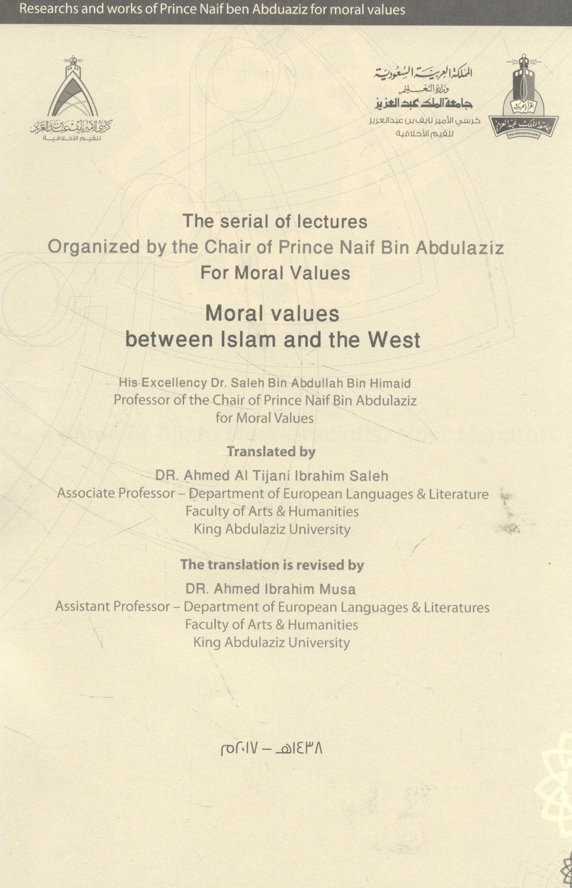 Published/Created: Saudi Arabia : Researches and Works of Prince Naif Ben Abdulaziz Chair For Moral Values, 2017.