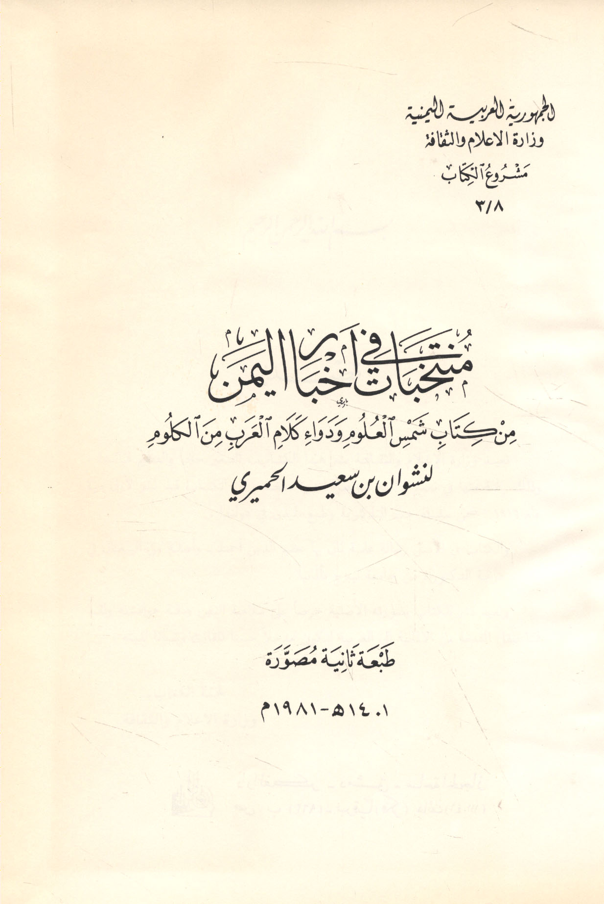 Published/Created: al-Yaman : Wizārat al-I‘lām wa-al-Thaqāfah, 1981.