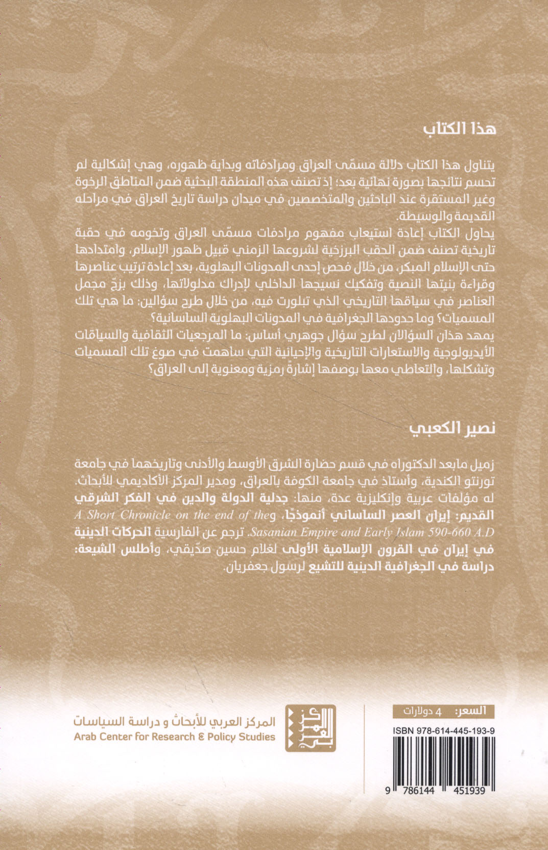 Musammá al-‘Irāq wa-tukhūmuhu fī al-mudawwanāt al-Bahlawīyah - al-Sāsānīyah, dirāsah fī al-tārīkh al-thaqāfī wa-al-aydyūlūjī lil-mafhūm