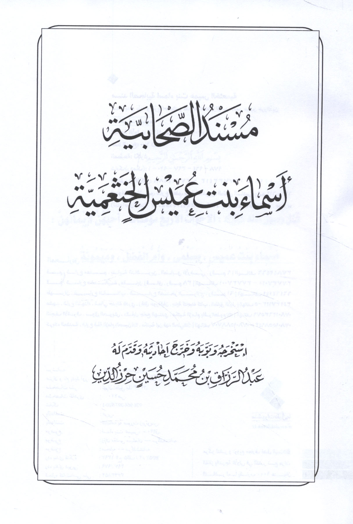 Musnad al-ṣaḥābīyah Asmā’ bint ‘Umays al-Khath‘amīyah