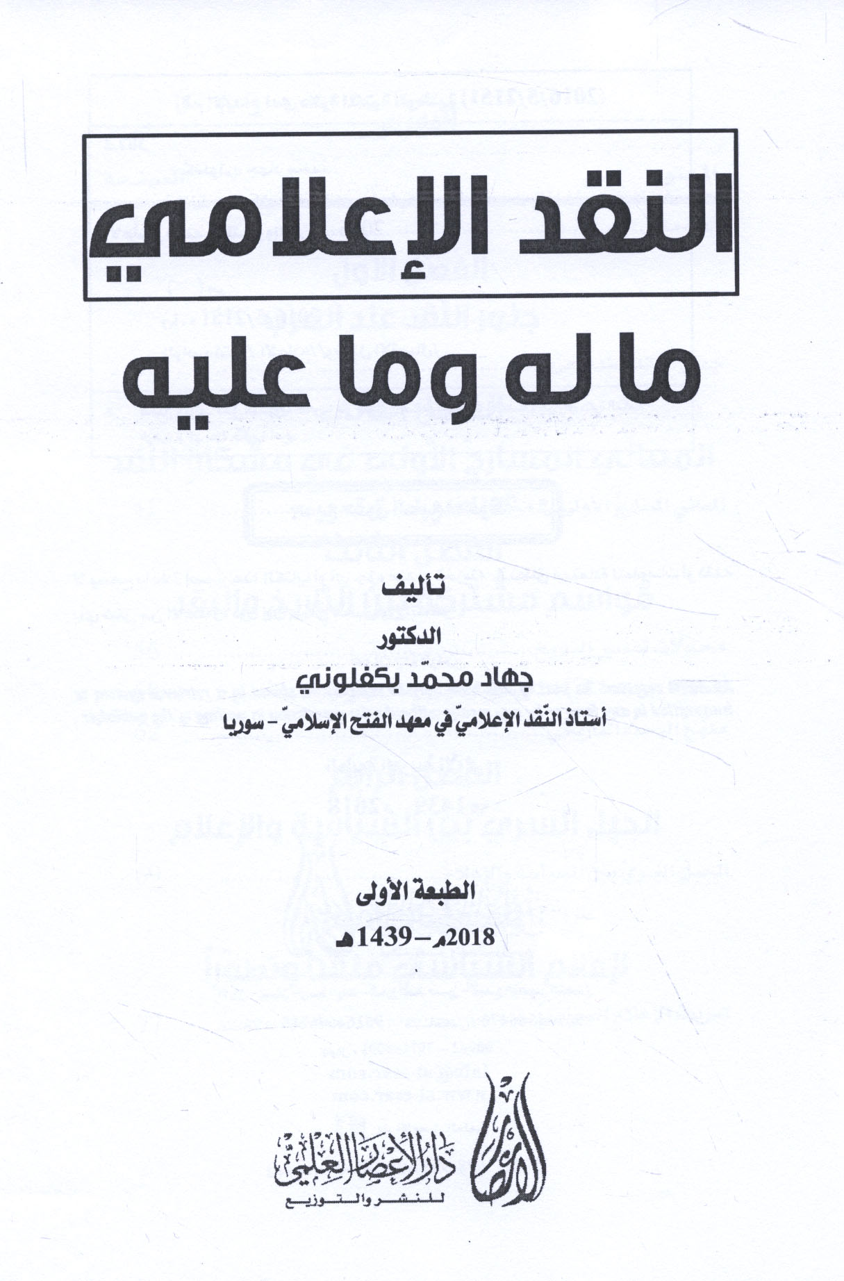 Published/Created: ‘Ammān : Dār al-I‘ṣār al-‘Ilmī lil-Nashr wa-al-Tawzī‘, 2018.