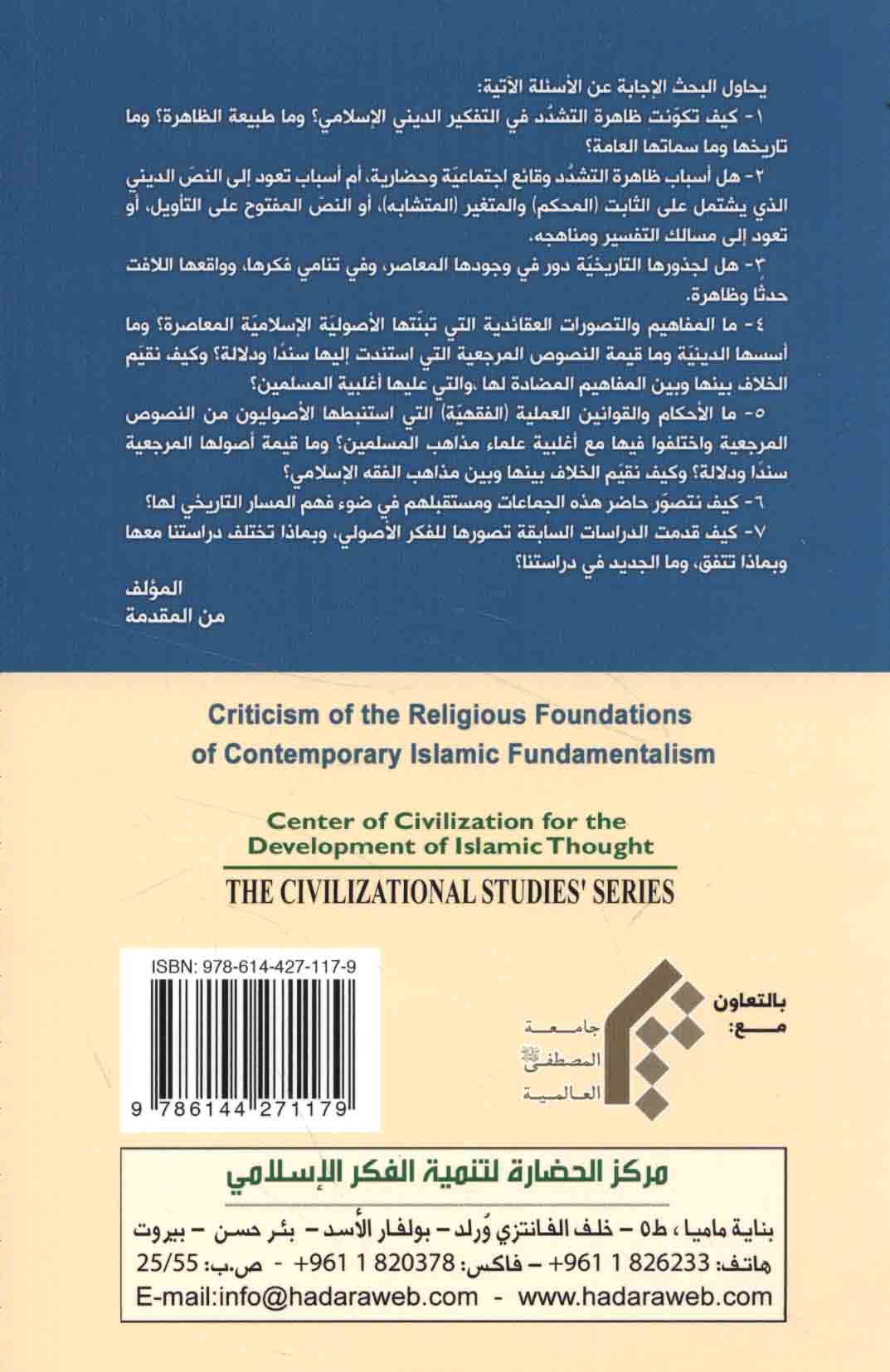 Published/Created: Bayrūt : Markaz al-Ḥaḍārah li-Tanmiyat al-Fikr al-Islāmī, 2017.