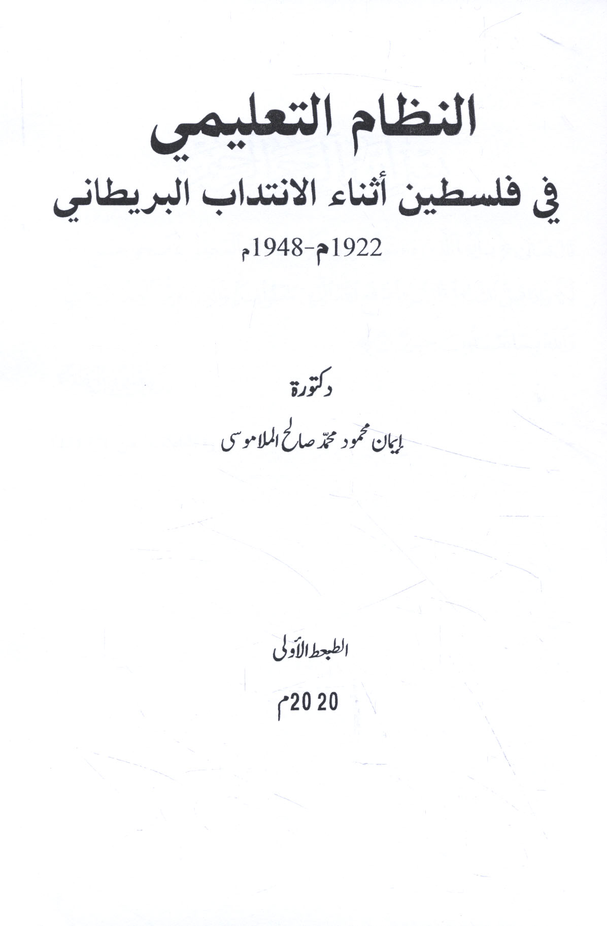 - Education -- Palestine -- History -- 20th century