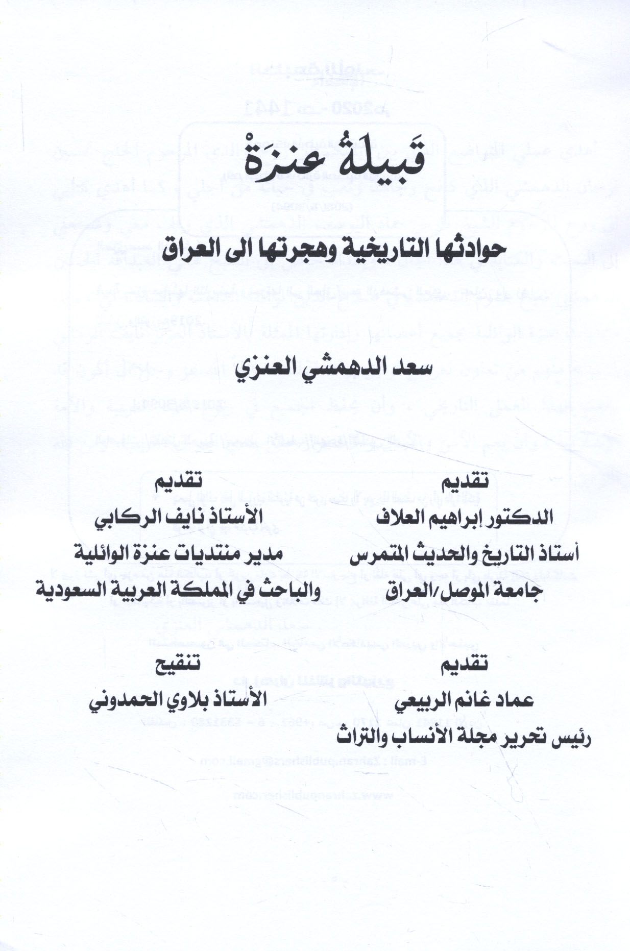 Subject: Anazah (Arab tribe) -- History.