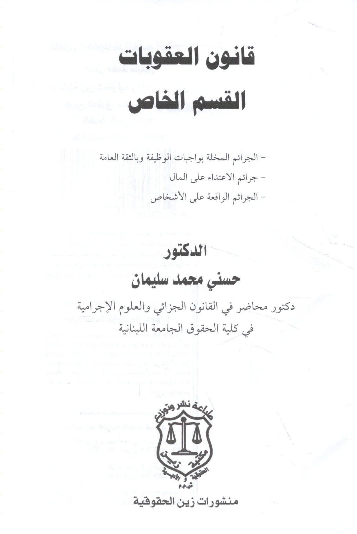 | Sharḥ qānūn al-‘uqūbāt al-Lubnānī, al-qism al-‘āmm |