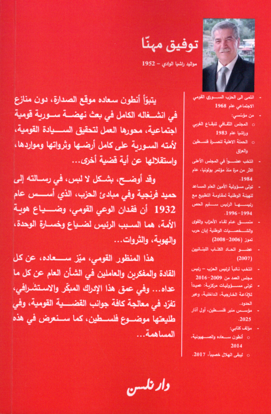 | Anṭūn Sa‘ādah min al-ta‘sīs ilá al-shahādah, 1932-1949 |