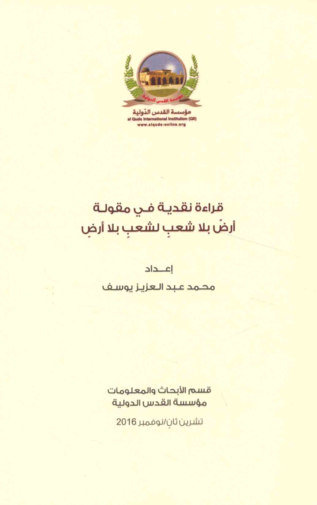 Published/Created: Bayrūt : Mu’assasat al-Quds al-Duwalīyah, 2016.