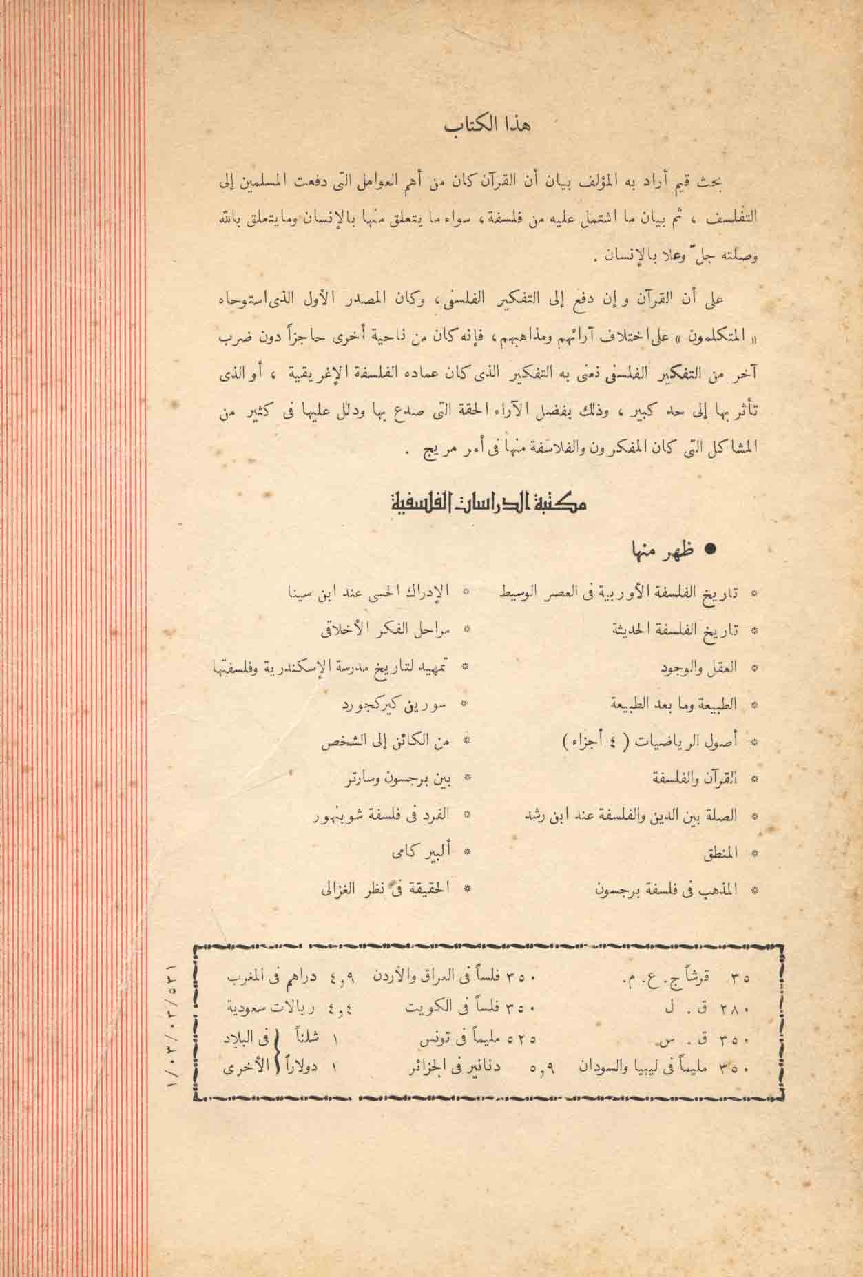 | al-Falsafah al-‘aqlīyah al-dīnīyah li-fahm manṭiq al-falsafāt al-wujūdīyah wa-al-māddīyah |
