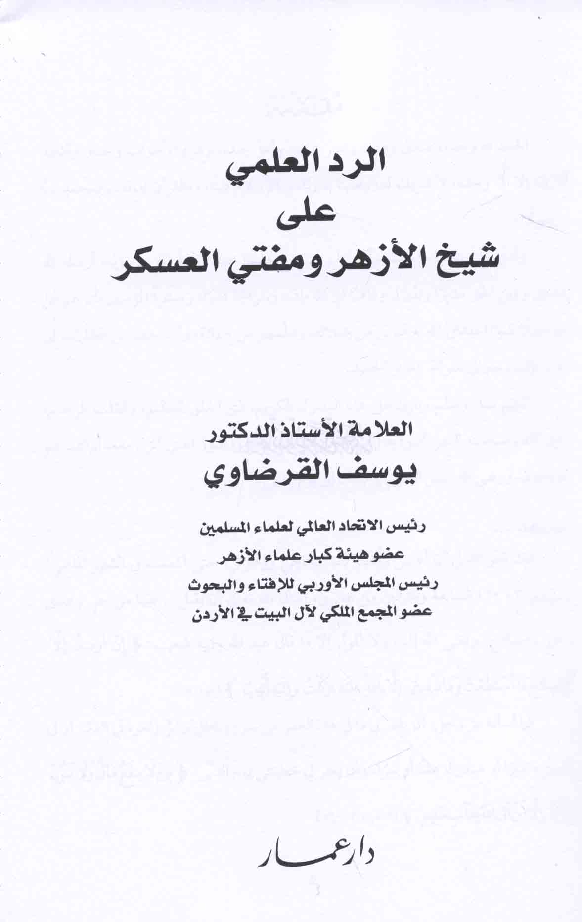 الـرد الـعـلـمـي عـلـى شـيـخ الأزهـر و مـفـتـي الـعـسـكـر