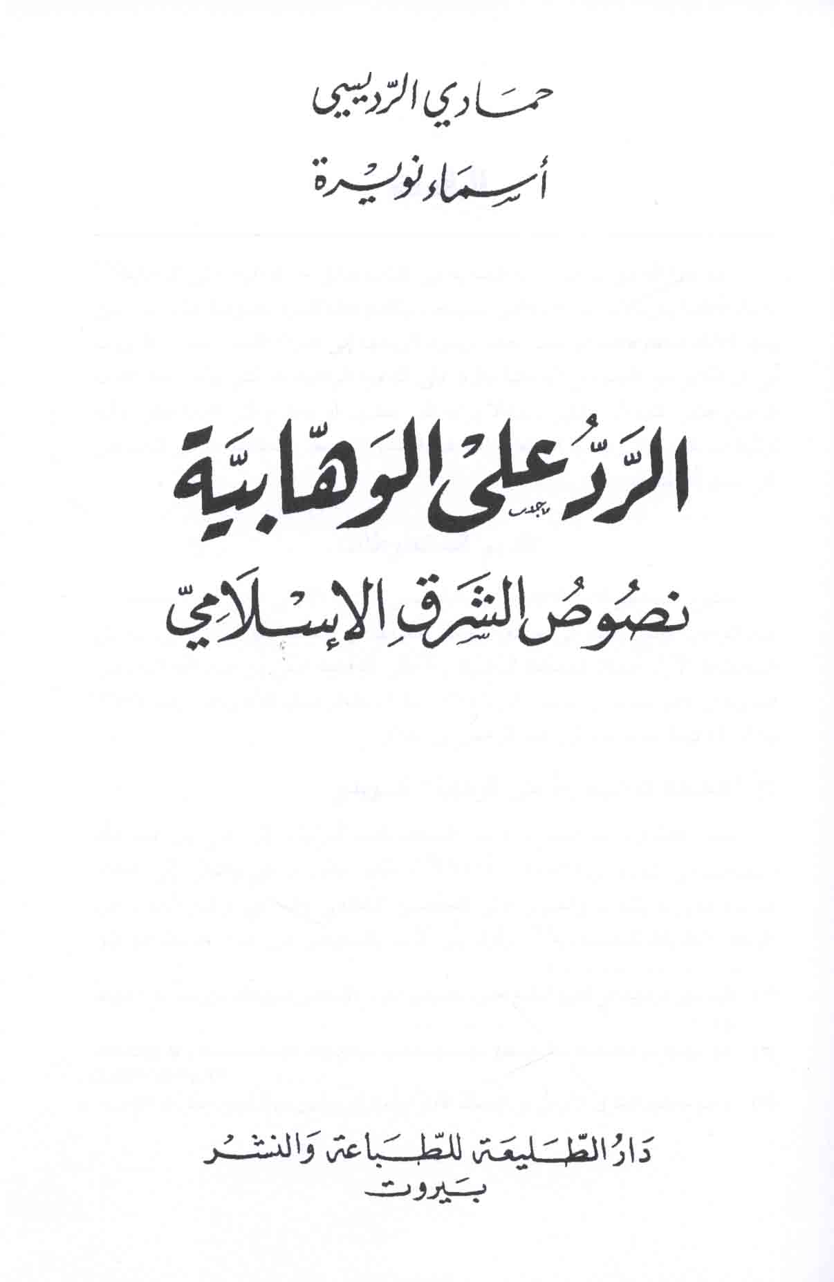 - Wahhabiyah -- Apologetic works