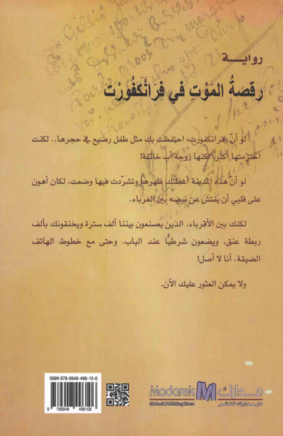 Raqṣat al-mawt fī Frānkfūrt, riwāyah