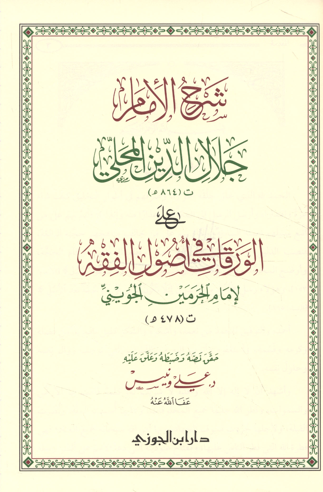 - Imam al-Haramayn al-Juwayni, Abd al-Malik ibn Abd Allah, 1028-1085. Kitab al-burhan fi usul al-fiqh