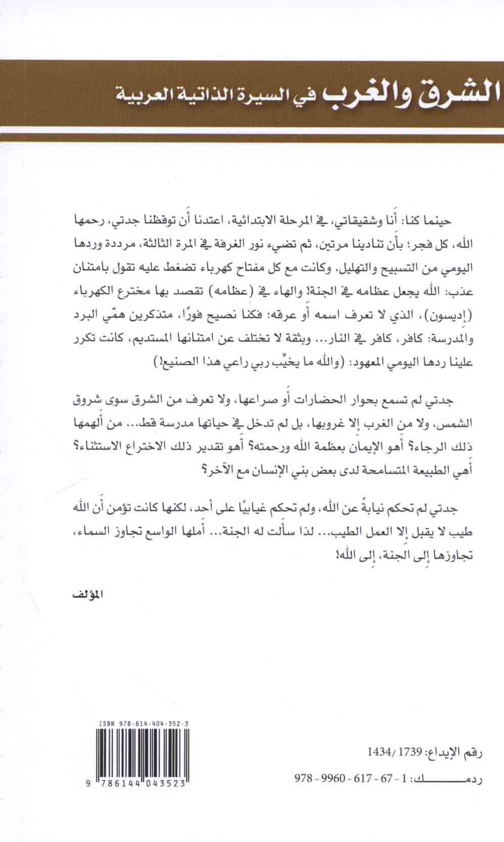 Sharq wa-al-Gharb fī al-sīrah al-dhātīyah al-‘Arabīyah