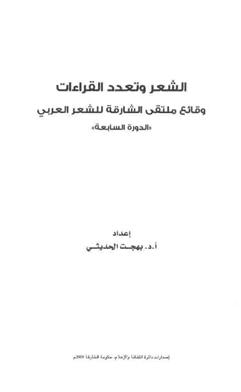 الـشـعـر و تـعـدد الـقـراءات، وقـائـع مـلـتـقـى الـشـارقـة لـلـشـعـر الـعـربـي ، الـدورة الـسـابـعـة