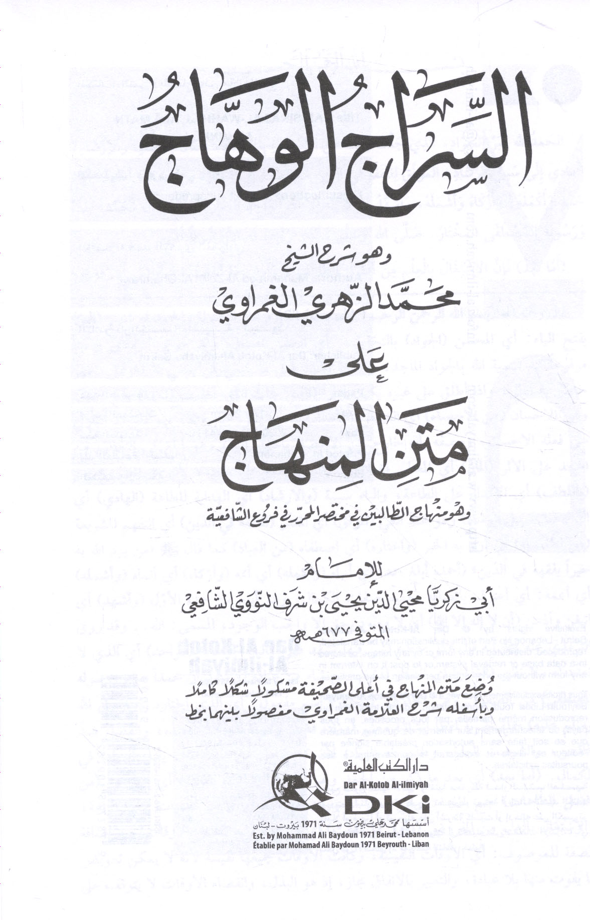 - Nawawi, 1233-1277. Minhaj al-talibin