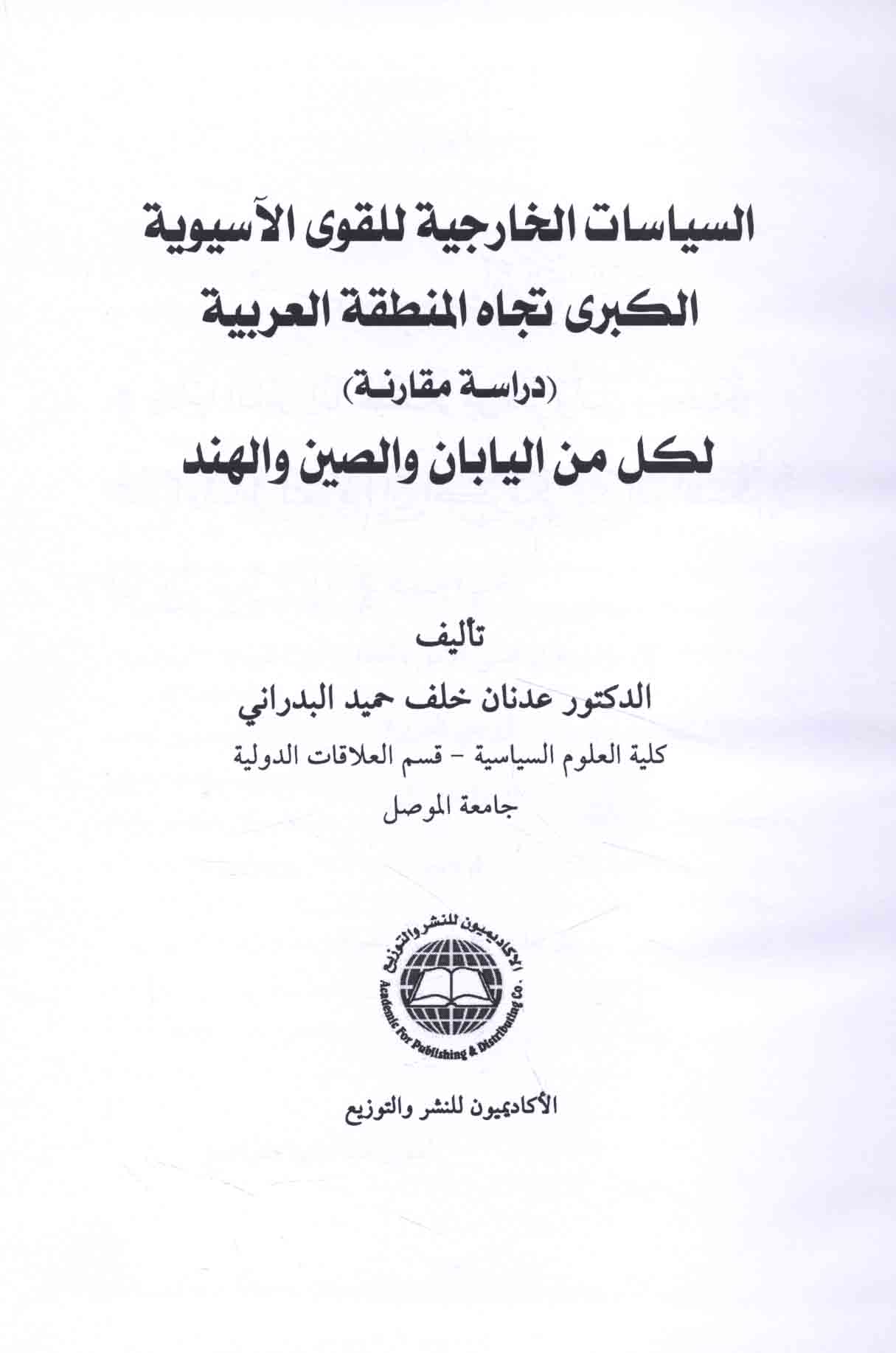 Siyāsāt al-khārijīyah lil-quwá al-Āsyawīyah al-Kubrá tujāha al-minṭaqah al-‘Arabīyah, dirāsah muqāranah li-kull min al-Yābān wa-al-Ṣīn wa-al-Hind