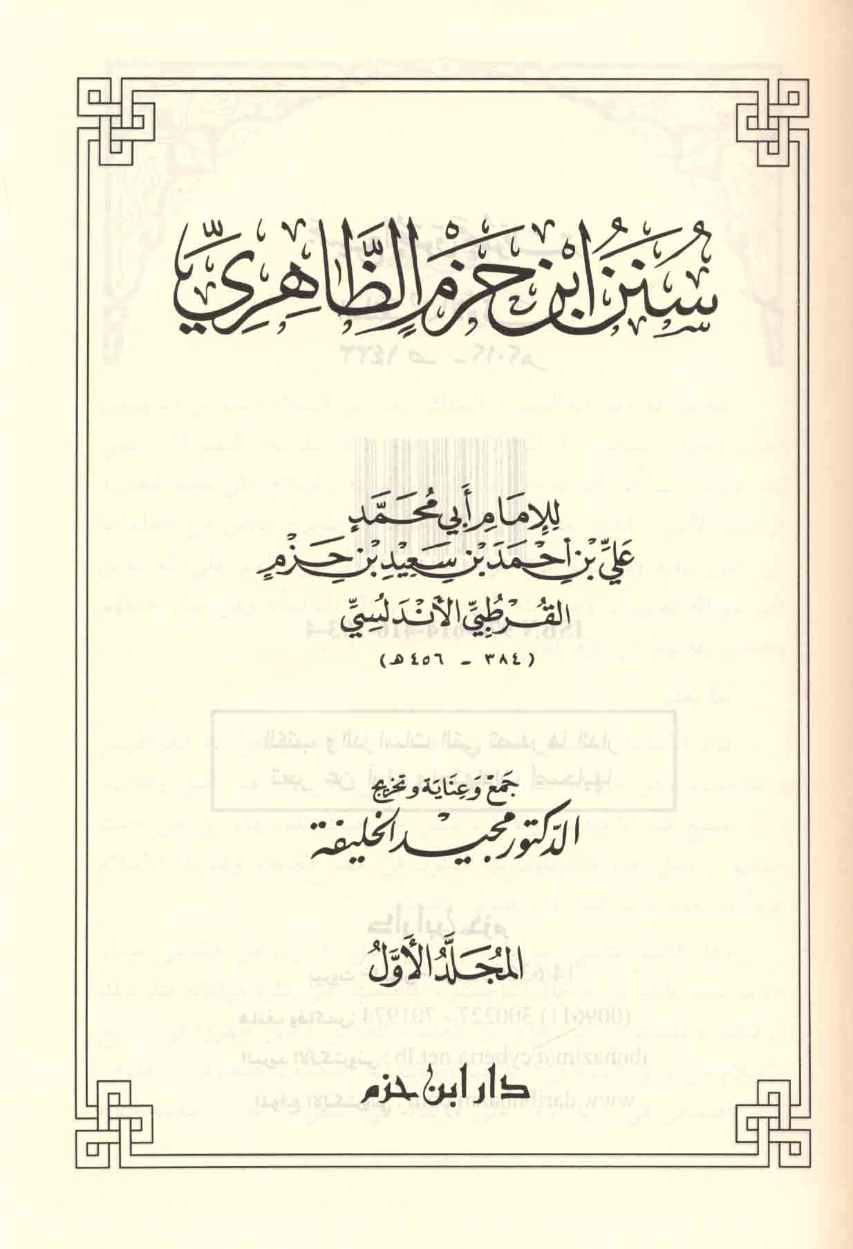 Published/Created: Bayrūt : Dār Ibn Ḥazm lil-Ṭibā‘ah wa-al-Nashr wa-al-Tawzī‘, 2012.