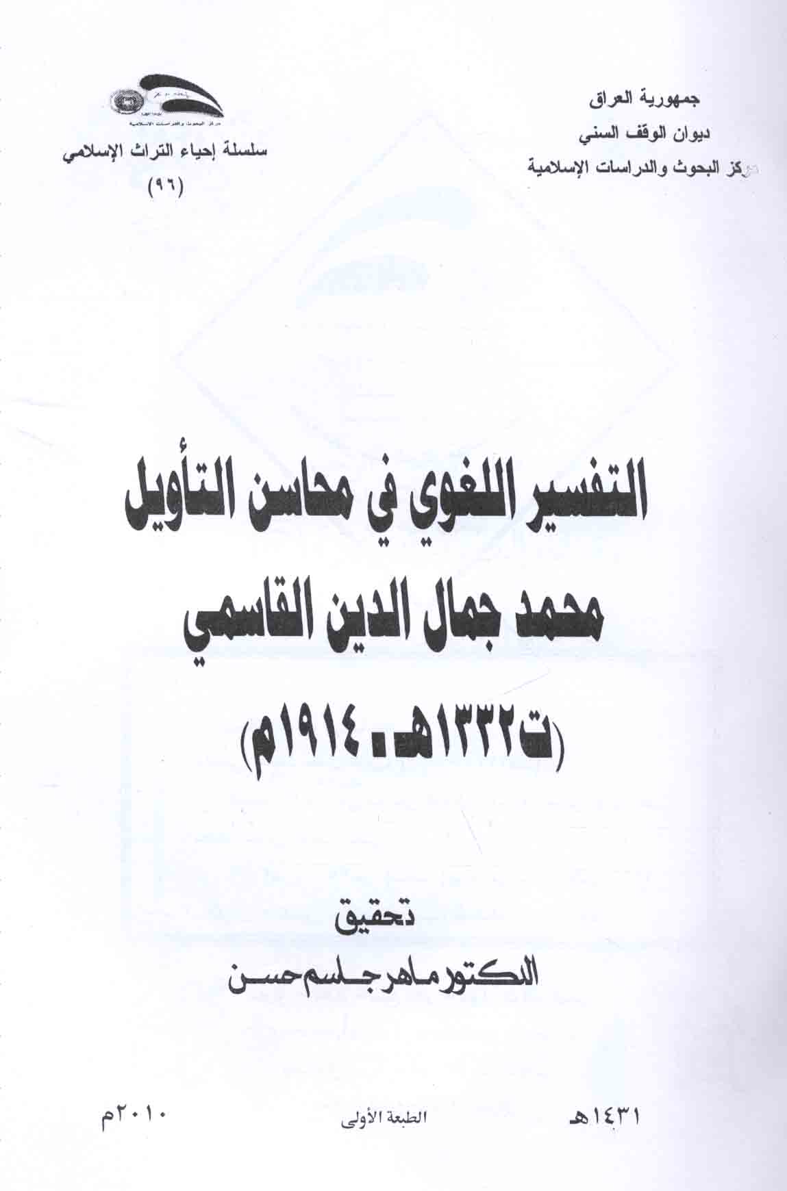 Subject: Qasimi, Muhammad Jamal al-Din, 1866-1914. Mahasin al-tawil.
