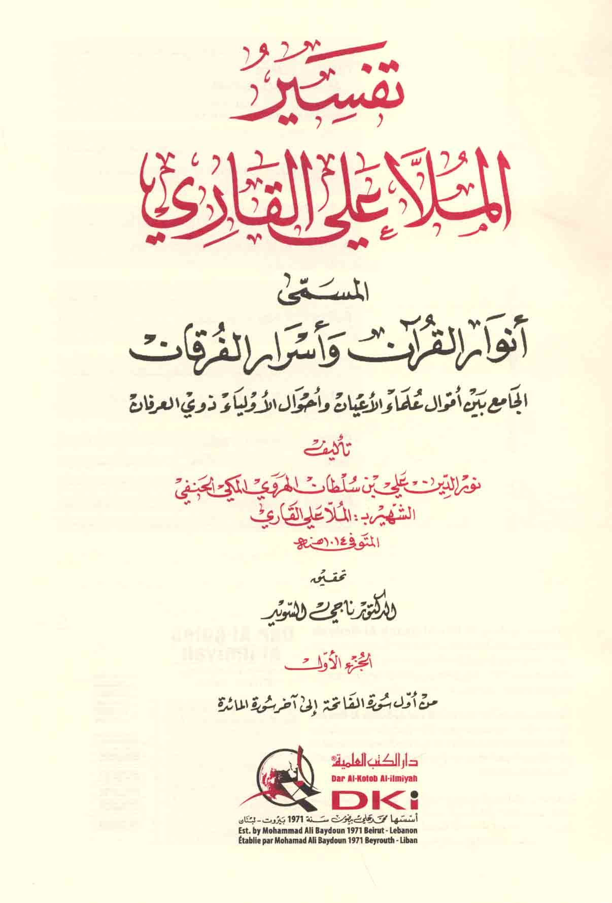 Tafsīr al-Mullā ‘Alī al-Qārī al-musammá Anwār al-Qur’ān wa-asrār al-furqān, al-jāmi‘ bayna aqwāl ‘ulamā’ al-a‘yān wa-aḥwāl al-awliyā’ dhawī al-‘irfān (5 v.)
