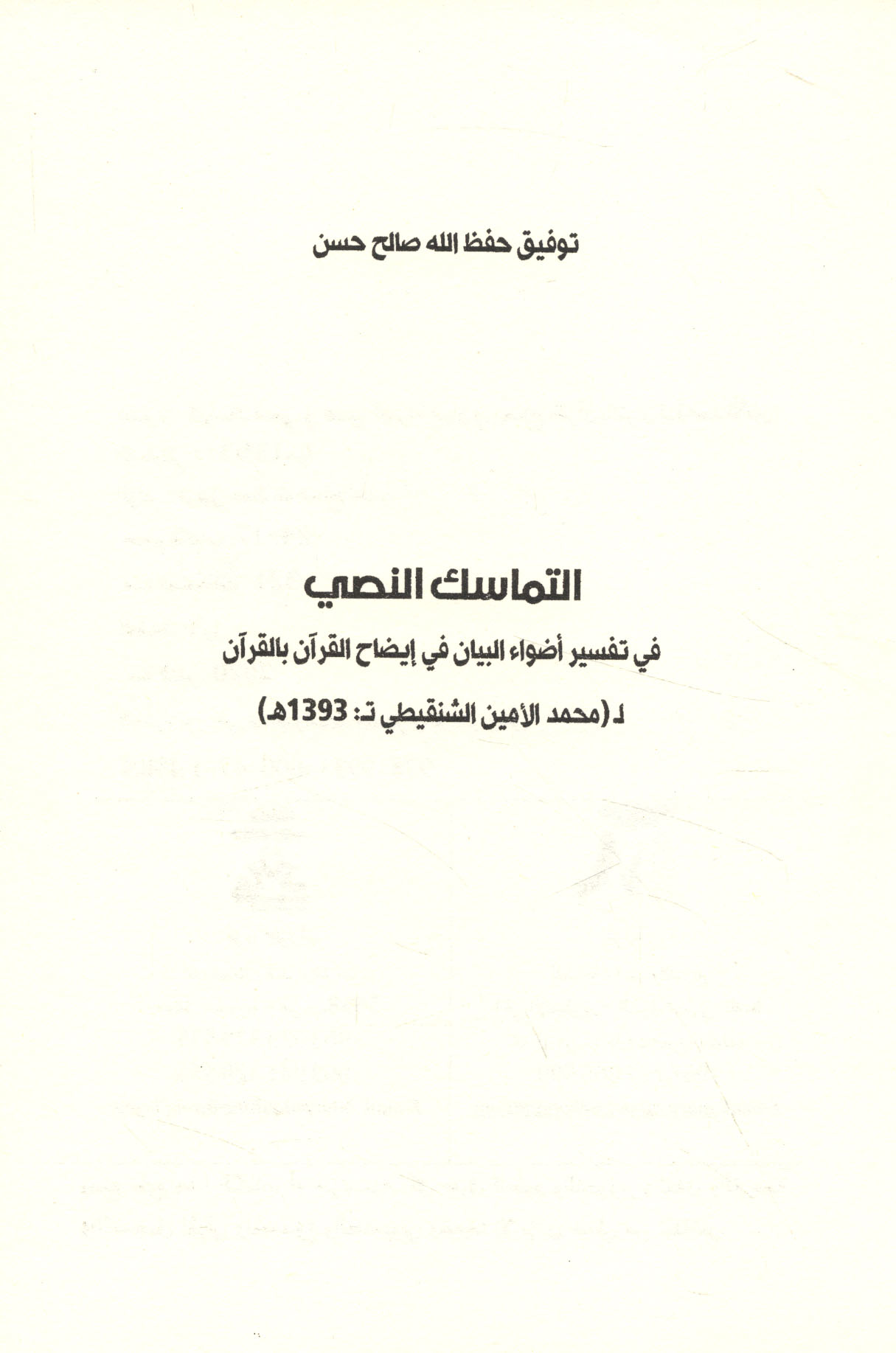 Subject: Shinqiti, Muhammad al-Amin ibn Muhammad al-Mukhtar. Adwa al-bayan fi idah al-Quran bi-al-Quran.