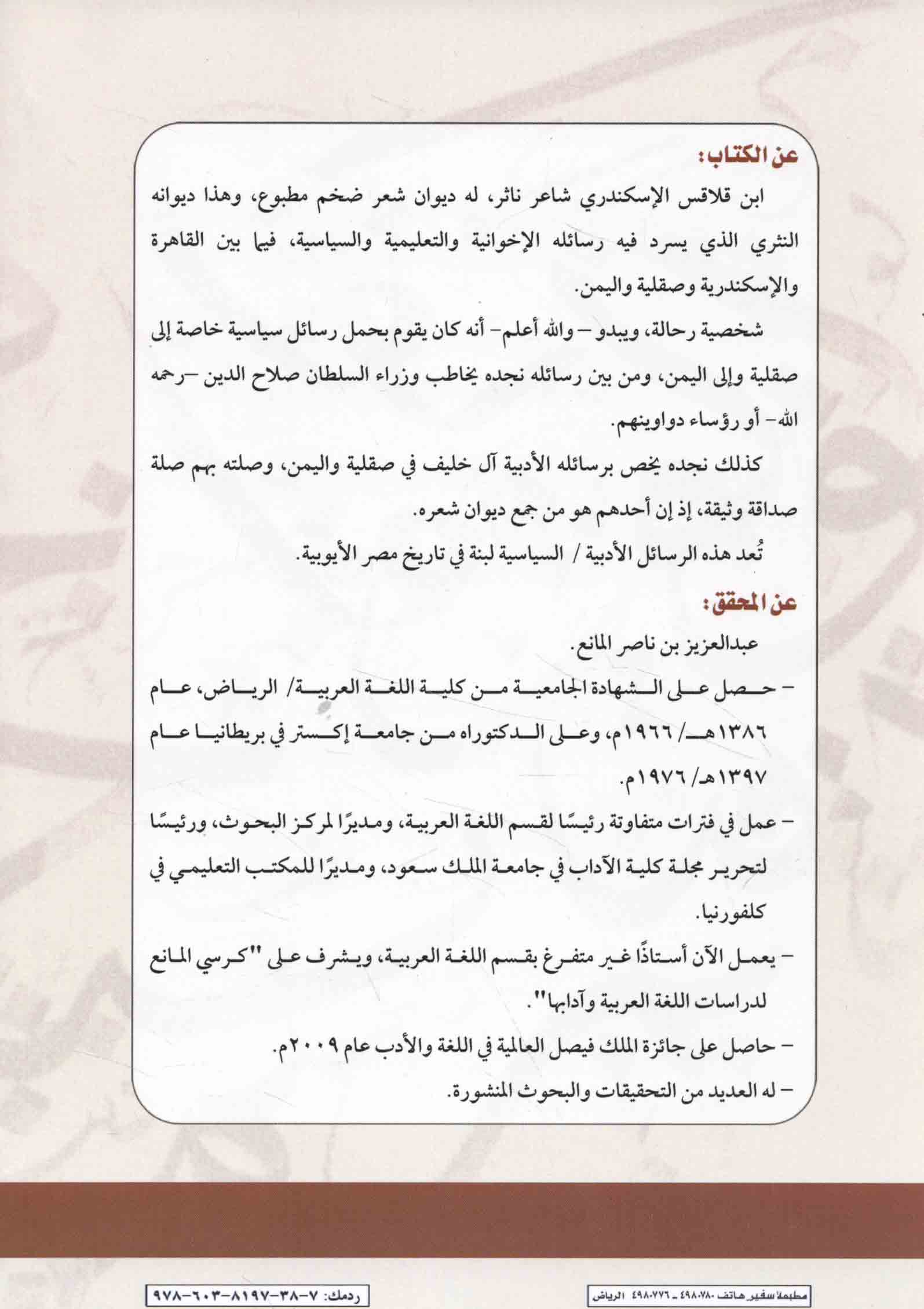 Subject: Ibn Qalaqis, Nasr ibn Abd Allah, 1137-1172 -- Correspondence.