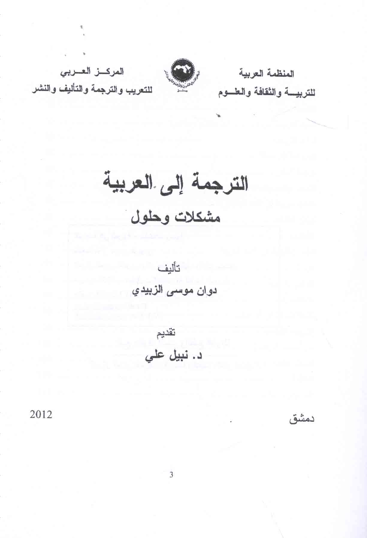 Published/Created: Dimashq : al-Markaz al-‘Arabī lil-Ta‘rīb wa-al-Tarjamah wa-al-Ta’līf wa-al-Nashr, 2012.