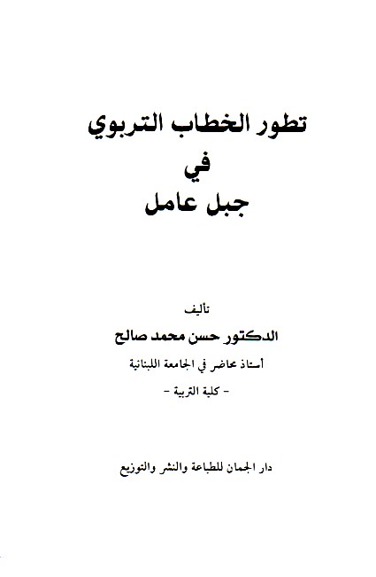 | Taṭawwur al-ta‘līm wa-al-thaqāfah fī Jabal ‘Āmil mundhu nihāyat al-qarn al-tāsi‘ ‘ashar ḥattá muntaṣaf al-qarn al-‘ishrīn |