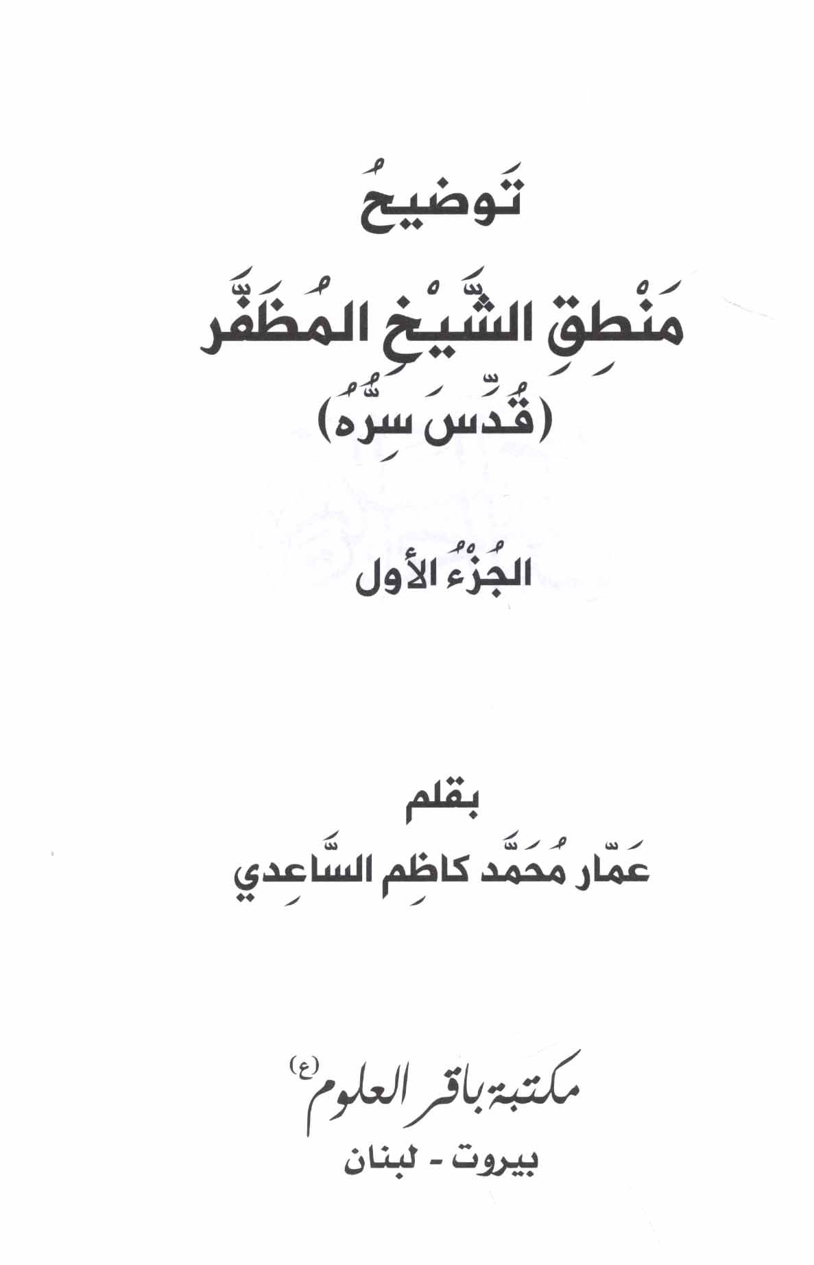 - Muzaffar, Muhammad Rida, 1904-1964. Mantiq