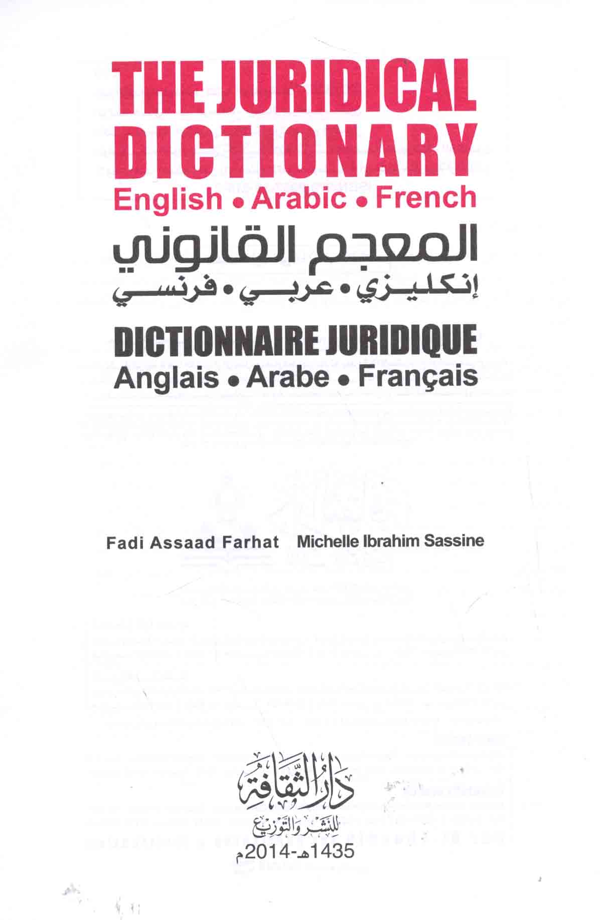 | The Courts' language, English - French - Arabic Dictionary |