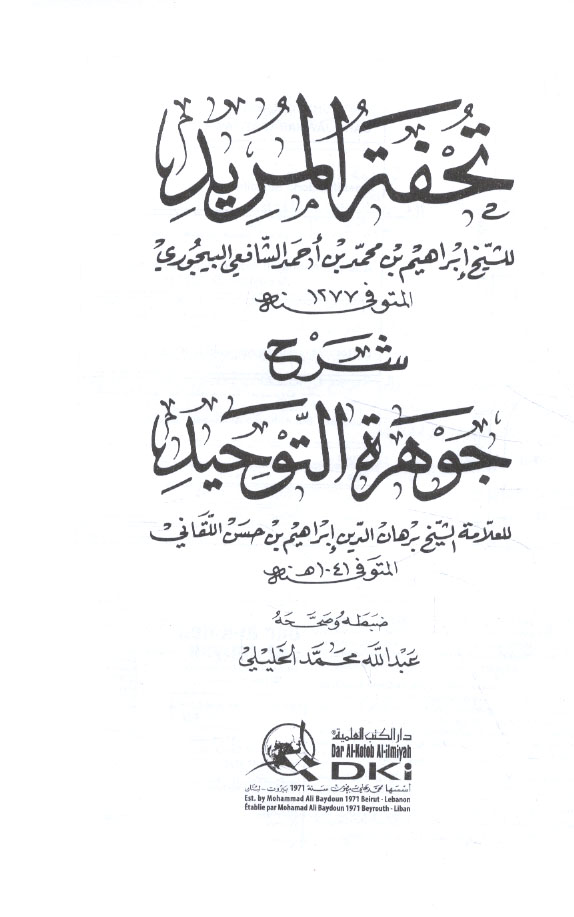 Subject: Laqani, Ibrahim ibn Ibrahim, -1631 or 1632. Jawharat al-tawhid.