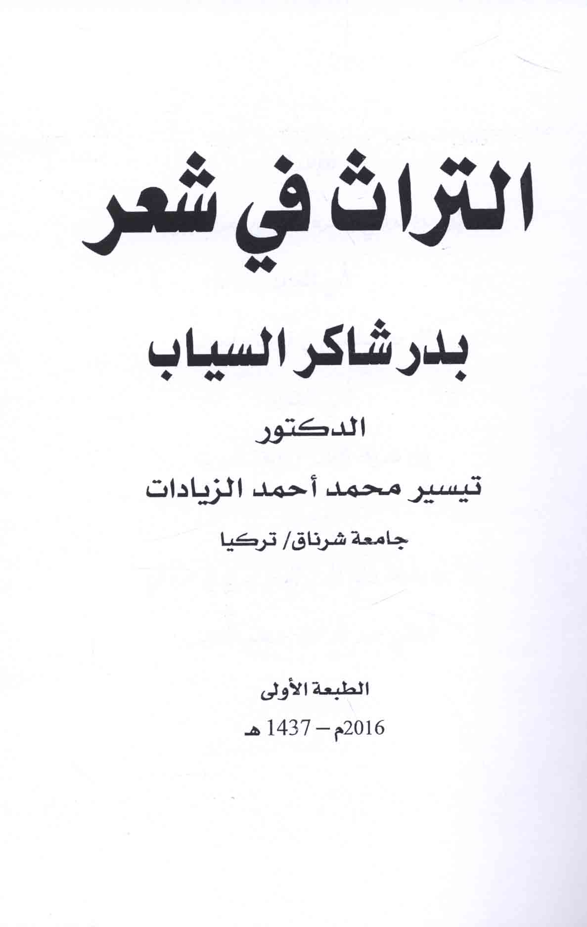 | Talaqqī al-naqd al-‘Arabī al-ḥadīth lil-usṭūrah fī shi‘r Badr Shākir al-Sayyāb |